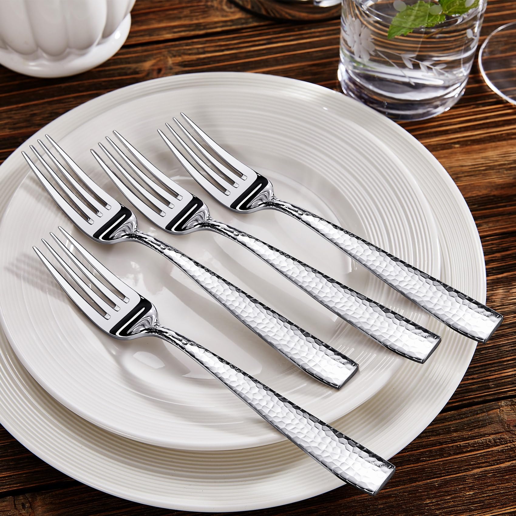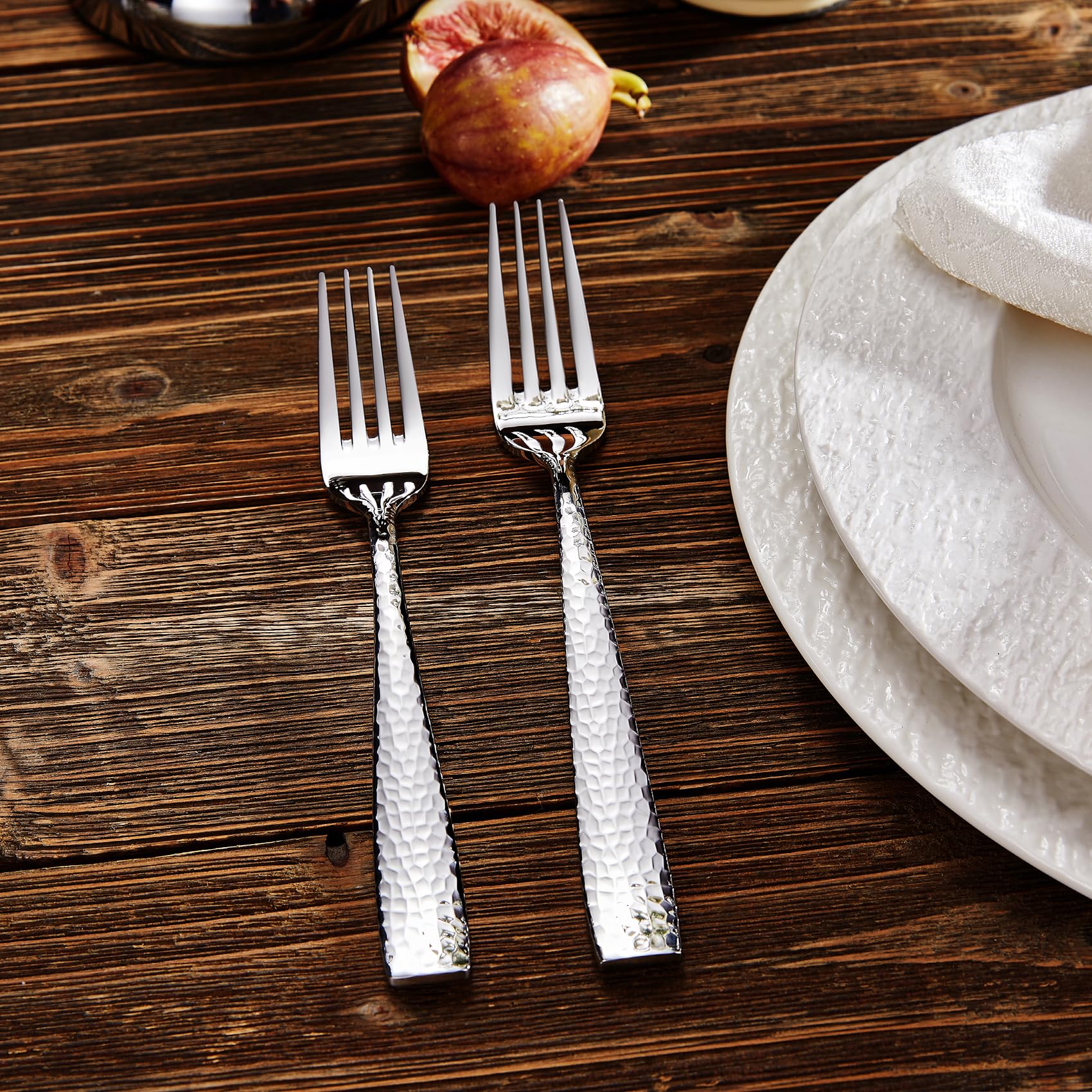 Juego de 4 tenedores martillados Louis de 8.3 pulgadas, acero inoxidable 18/10, borde cuadrado con bordes redondeados suaves para mayor comodidad, apto para lavavajillas (4 tenedores de 8.3